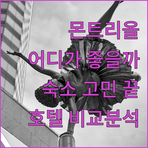 몬트리올 여행, 숙소 고민 해결! 몬트리올은 다양한 매력을 지닌 도시이기에 숙소 위치 선정이 중요합니다. 올드 몬트리올의 낭만, 편리한 교통을 원하신다면 다운타운 호텔을, 조용하고 여유로운 분위기를 선호하신다면 외곽의 부티크 호텔을 추천합니다.